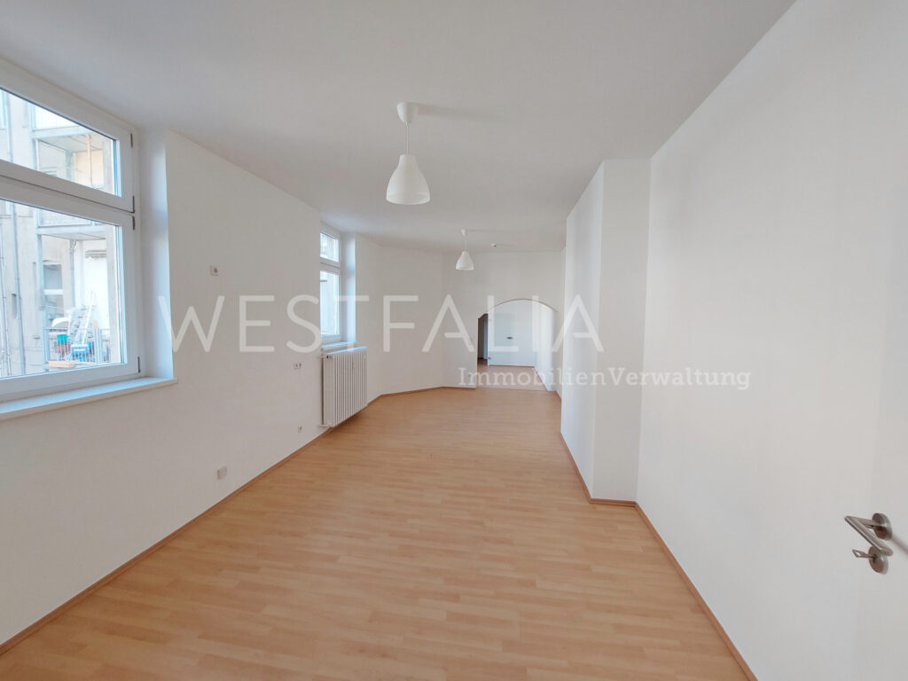 Diese außergewöhnlich geschnittene Wohnung besticht durch ihre individuelle Raumaufteilung. Ein heller Wohnraum,eine praktische Küche, ein weiß gefliestes Wannenbad, sowie ein separates Gäste-WC lassen keine Wünsche offen. Dankdes frisch verlegten Laminatbodens und der weißen Wände können Sie sofort einziehen. Ein ideales Zuhause für Singlesoder Paare, die das Außergewöhnliche suchen. Die Wohnung ist ab sofort bezugsfertig –…