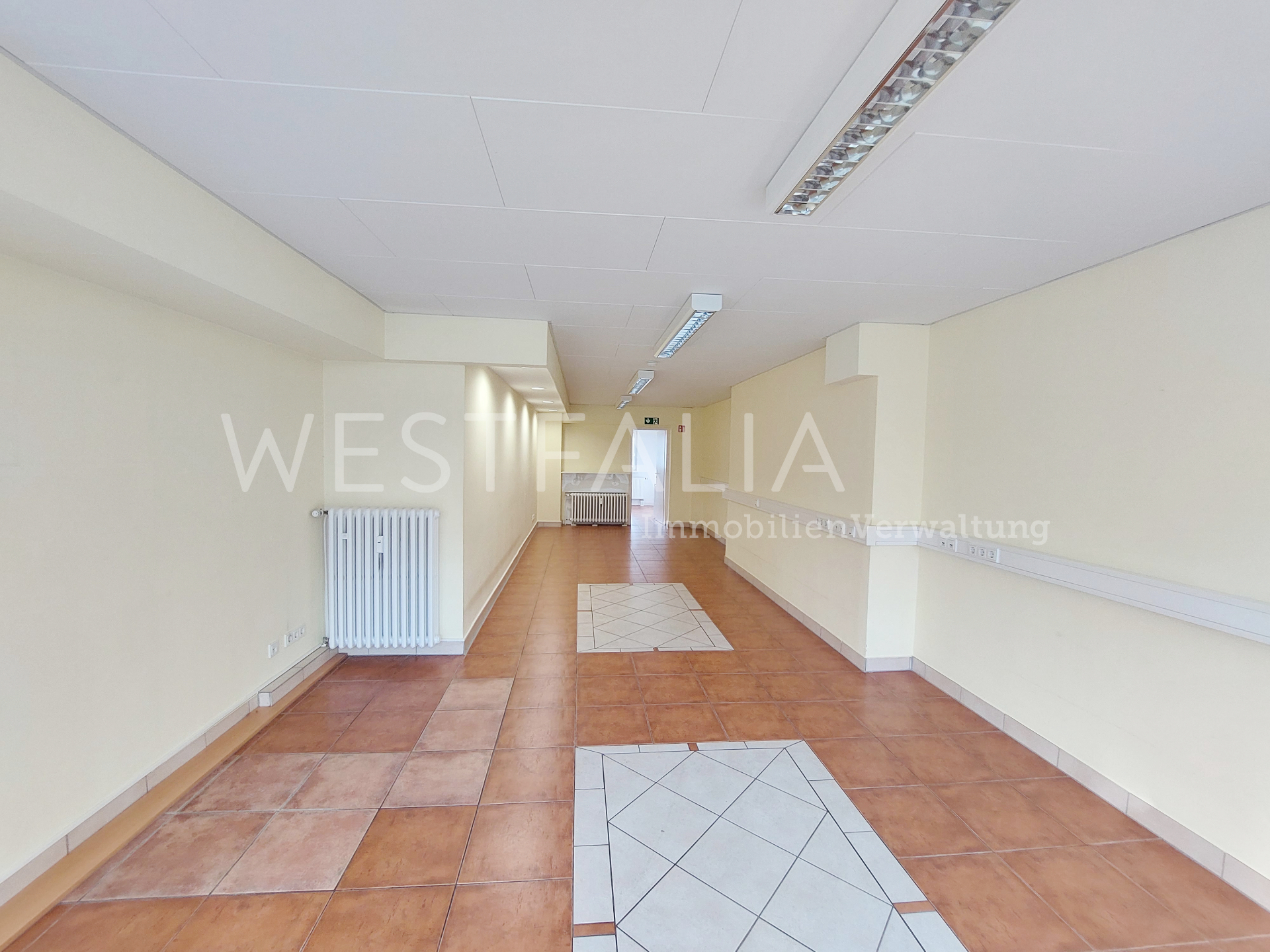 - • Heller Verkaufsraum mit hochwertigem Bodenbelag
