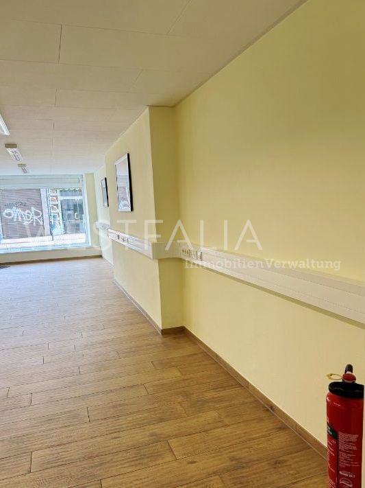 Die großzügige Fensterfront sorgt für eine hervorragende Sichtbarkeit und bietet optimale Präsentationsmöglichkeiten. Der vorhandene Bodenbelag, die Beleuchtung sowie die sanitären Einrichtungen ermöglichen einen schnellen Einzug und Betriebsstart. Zusätzlich steht ein abgetrennter Bürobereich mit integrierter Küchenzeile zur Verfügung.