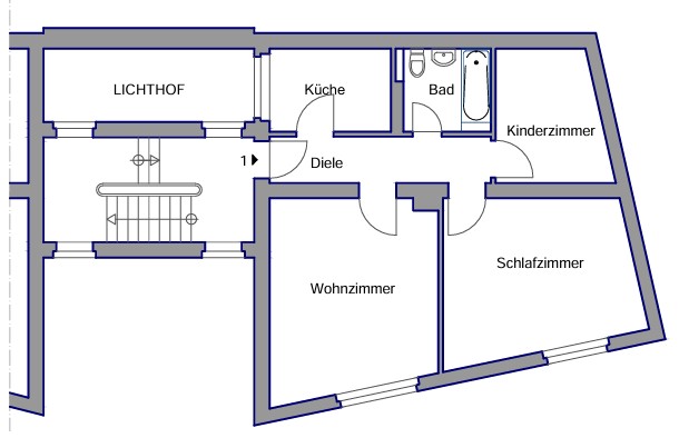 • 3 Räume, Küche, Diele, Bad