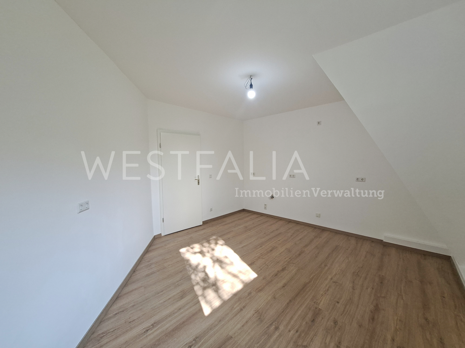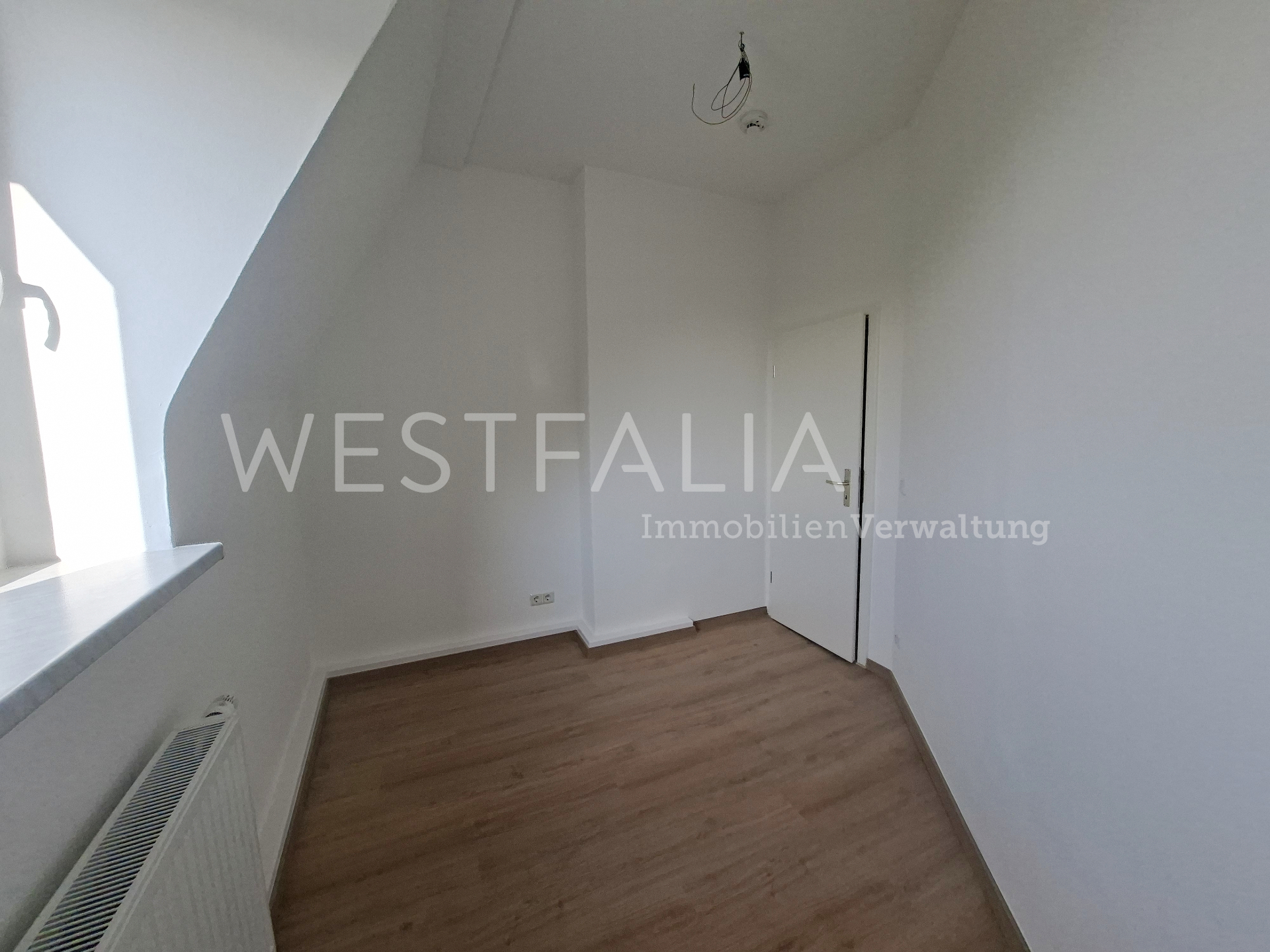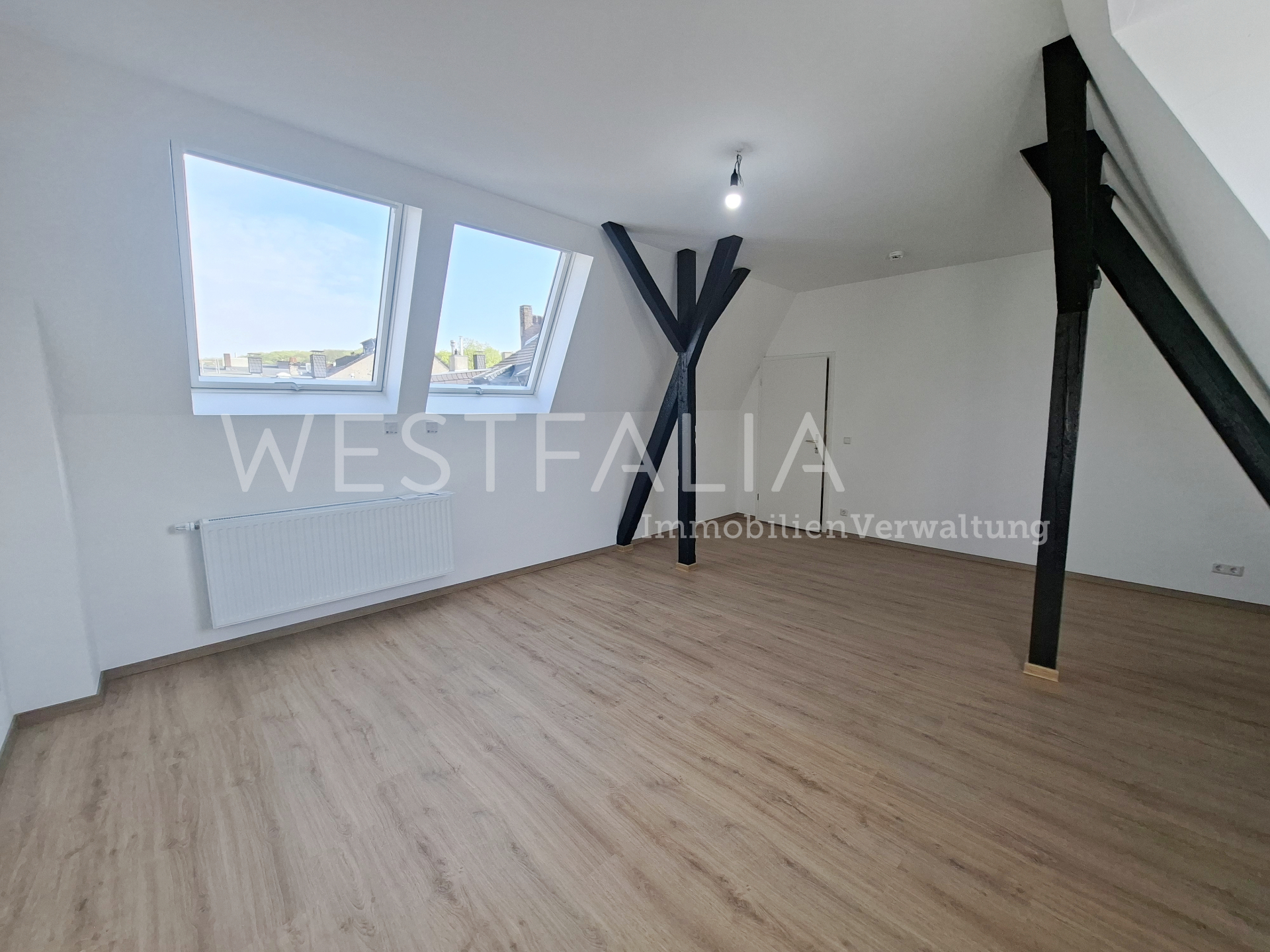 In allen Wohnräumen wurde ein moderner Laminatboden verlegt, der den hellen Räumen eine warme und wohnliche Ausstrahlung verleiht. Durch die Dachfenster fällt viel Tageslicht in die Wohnung und sorgt für ein angenehmes Wohngefühl.