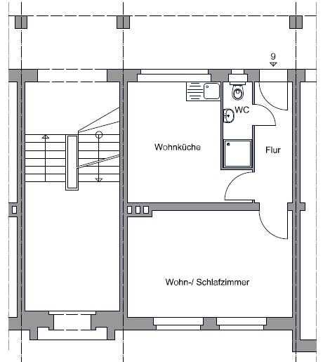 - 1 Raum, Wohnküche, Diele, Bad