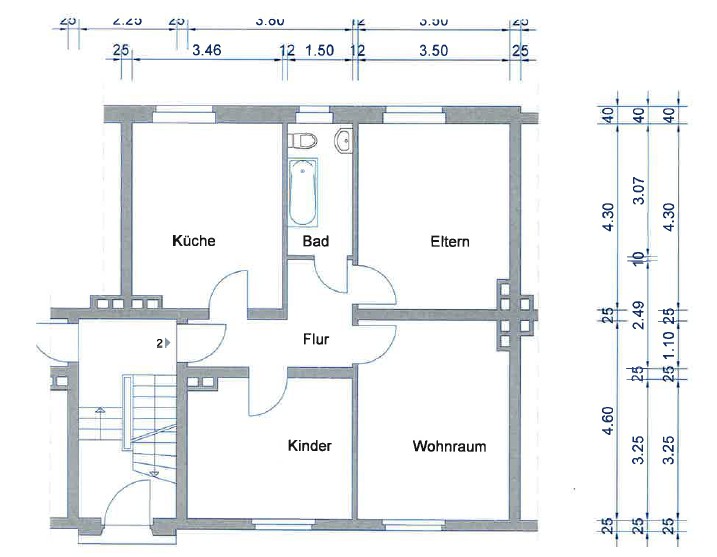 • 3 Zimmer, Küche, Diele, Bad